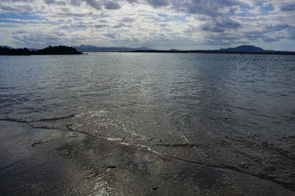 Bei meinem letzten Besuch auf Lobos hatte ich die Insel schon umrundet; diesmal wollte ich unbedingt zu der schönen Bucht, die mir erst aufgefallen war, als ich kurz vor Ende des Rundwegs schon fast wieder am Hafen gewesen war. Da war leider keine Zeit mehr gewesen, die Bucht noch zu besuchen. Diesmal aber machte ich nur einen kleinen Spaziergang ins „Dorf“ und wollte von dort aus schnurstracks zur Bucht. Nun ja. Ich wurde abgelenkt und verbrachte zwei Stunden im flachen Wasser der Bucht neben dem Puertito. Flaches Wasser, weißer Sand, kleine Fische, es war wunderbar warm.