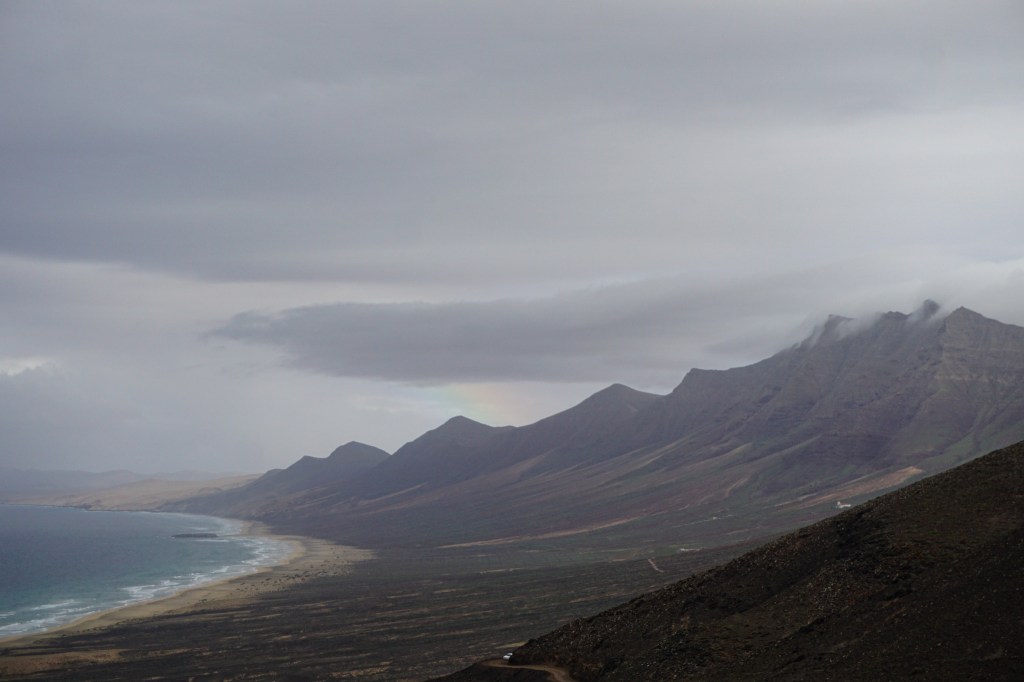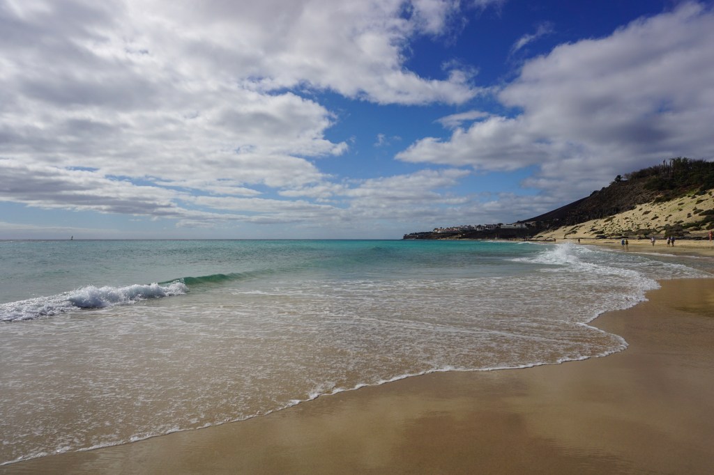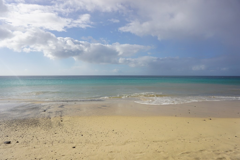 Nach stundenlanger Busfahrt (was hätte ich bloß gemacht, wenn ich aufs Klo gemusst hätte?) kam ich schon gegen 11 Uhr in Esquinzo an. Darauf, dass da so früh jemand auftaucht, war die Mitarbeiterin an der Rezeption nicht vorbereitet. Dabei hatte ich auch gar nicht erwartet, schon einzuchecken zu können. Ich wollte ja eh nur meinen schweren Rucksack erstmal loswerden. Ohne die schwere Last auf dem Rücken tippelte ich den steilen Weg neben dem Hotel zum Strand hinunter. Schon an der ersten Wegbiegung – noch weit oben, neben dem Restaurant – bot sich mir die Aussicht, die ich auch während der nächsten Tage kaum fassen konnte. Der Atlantik von oben. Horizont. Endlich Weite. Kilometerweise Sicht nach Süden.